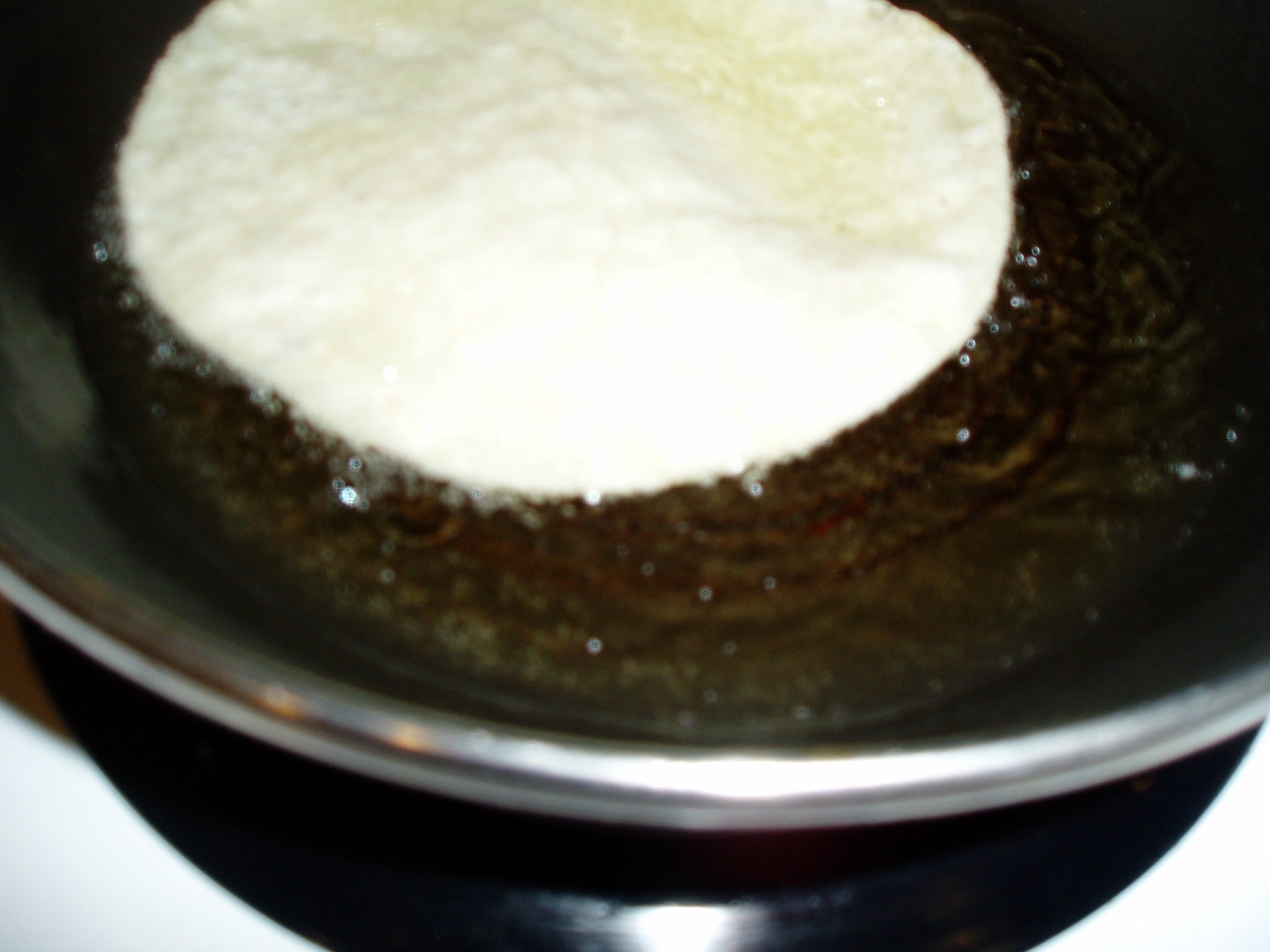 Heat about a 1/2 inch of cooking oil in a small skillet. When oil is pretty hot, coat one tortilla one side at a time until tortilla is soft.