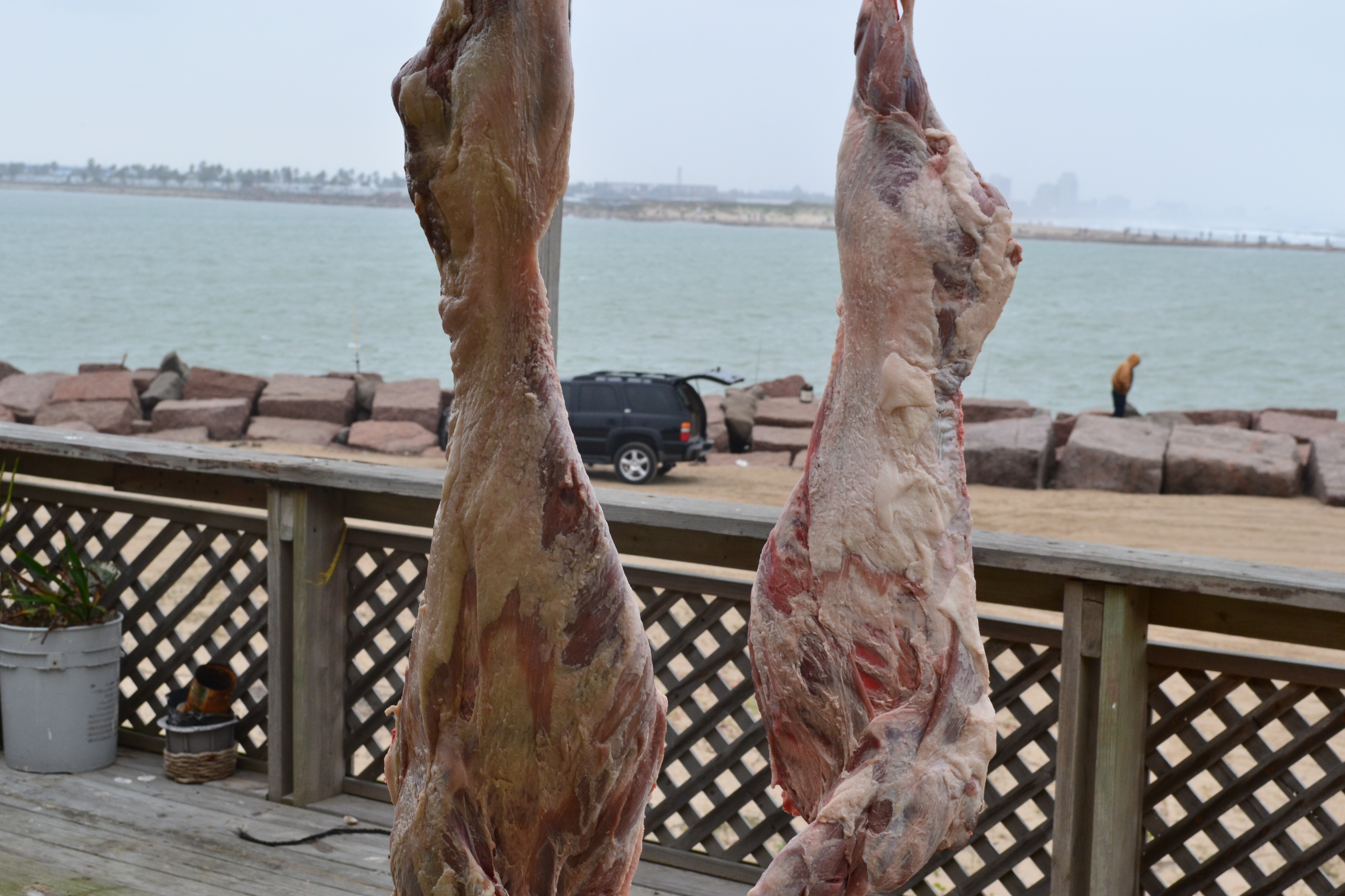 A couple of weeks ago, my deerslayer was called upon to put together a birthday extravaganza for the patriarch of the Deerslayer clan. The venue was a given; the family beach house near South Padre Island; rustic, grungy and the site of many, many great times had by all. The food? How about the whole wild pig we had in the freezer? Perfect! The method? Smoked on the grill, of course! My deerslayer worked with mesquite wood and a pit the way Picasso worked with oils. It was pure artistry. However, it required four men and a flatbed trailer to get the pit to its destination.