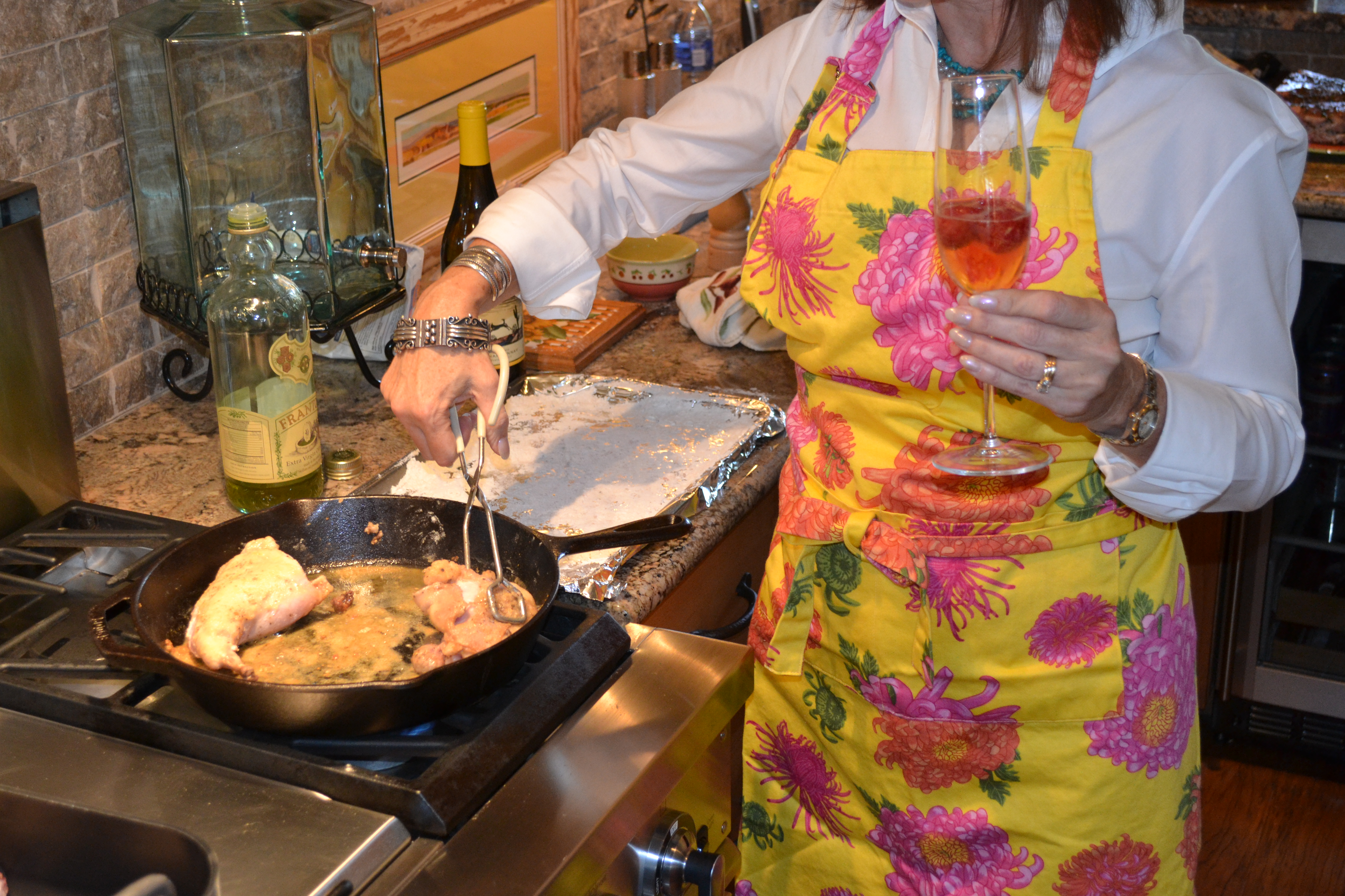 Cut rabbit into about 4 or 5 pieces, two legs, two fore quarters, and ribs, depending on the size. Season liberally with kosher salt and fresh ground pepper. Dredge in flour.