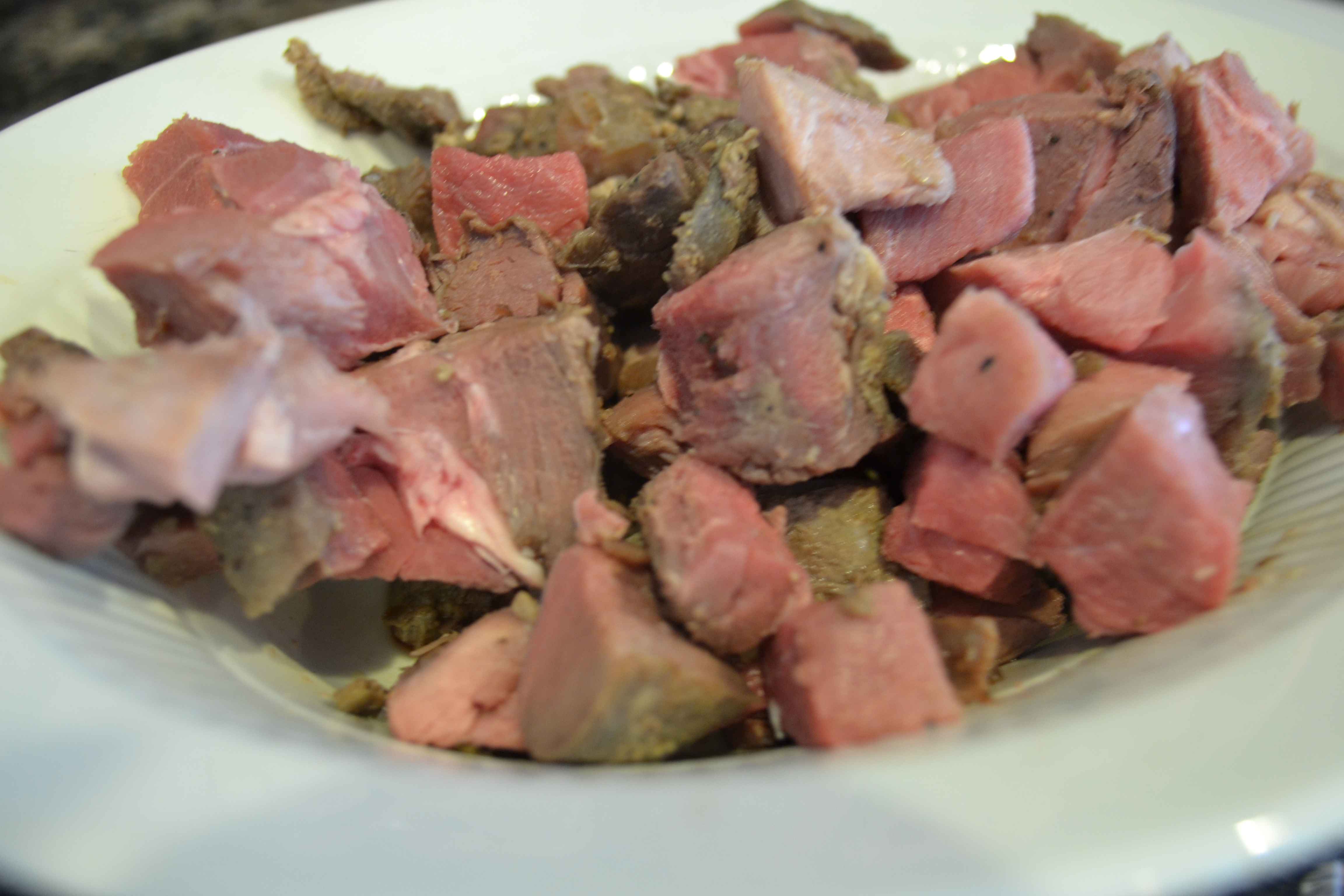 about 1/2 pound leftover venison*  cut up into chunks