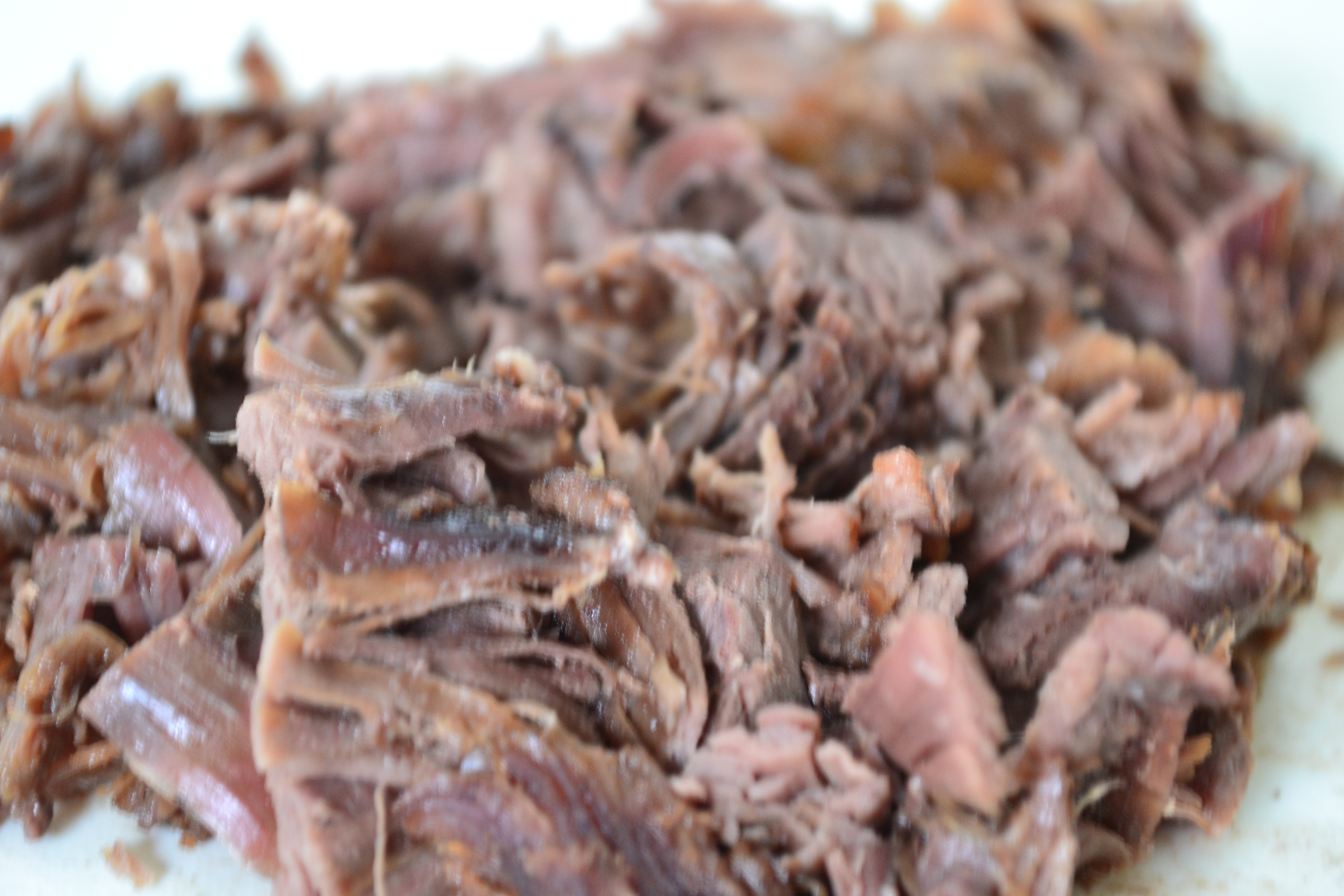 Chop and shred meat into a cast iron skillet. Add enough beef stock to cover meat and simmer on low. Add ½ to 1 teaspoon of comino and stir. Season with salt and pepper mix. Allow stock to reduce by about a third. This is a perfect time to prepare Mexican rice. Serve with fresh corn tortillas and pico de gallo.