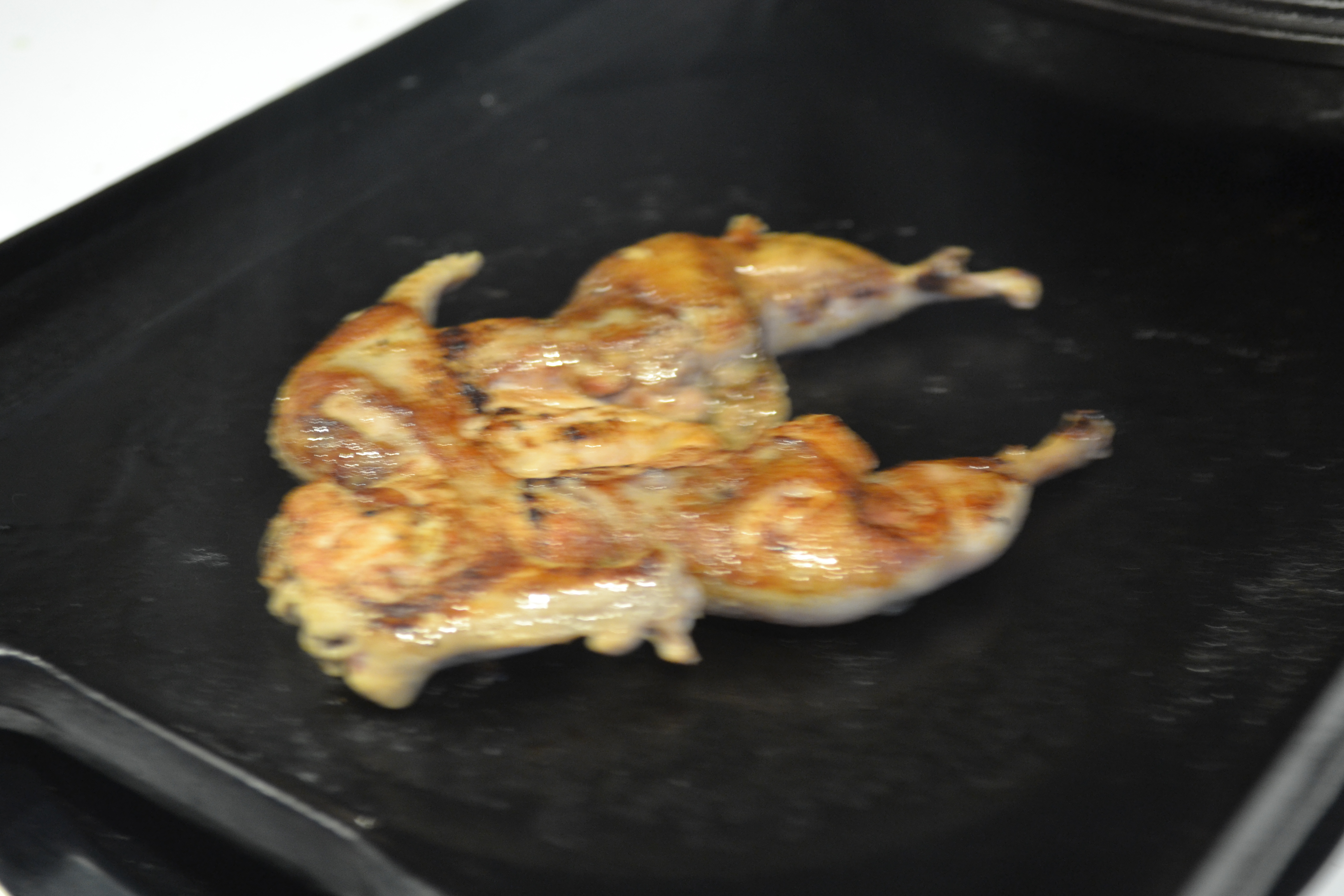 While I’ve come across many quail dishes that were quite delicious, there was one that really stands out. The marinated quail were deboned except for the wings and legs, leaving the main succulent, beautifully flavorful part of the bird to be savored without picking at bones. The birds are seared, over high heat on a griddle or grilled. They are flattened with a skillet to allow the heat to penetrate more evenly.
