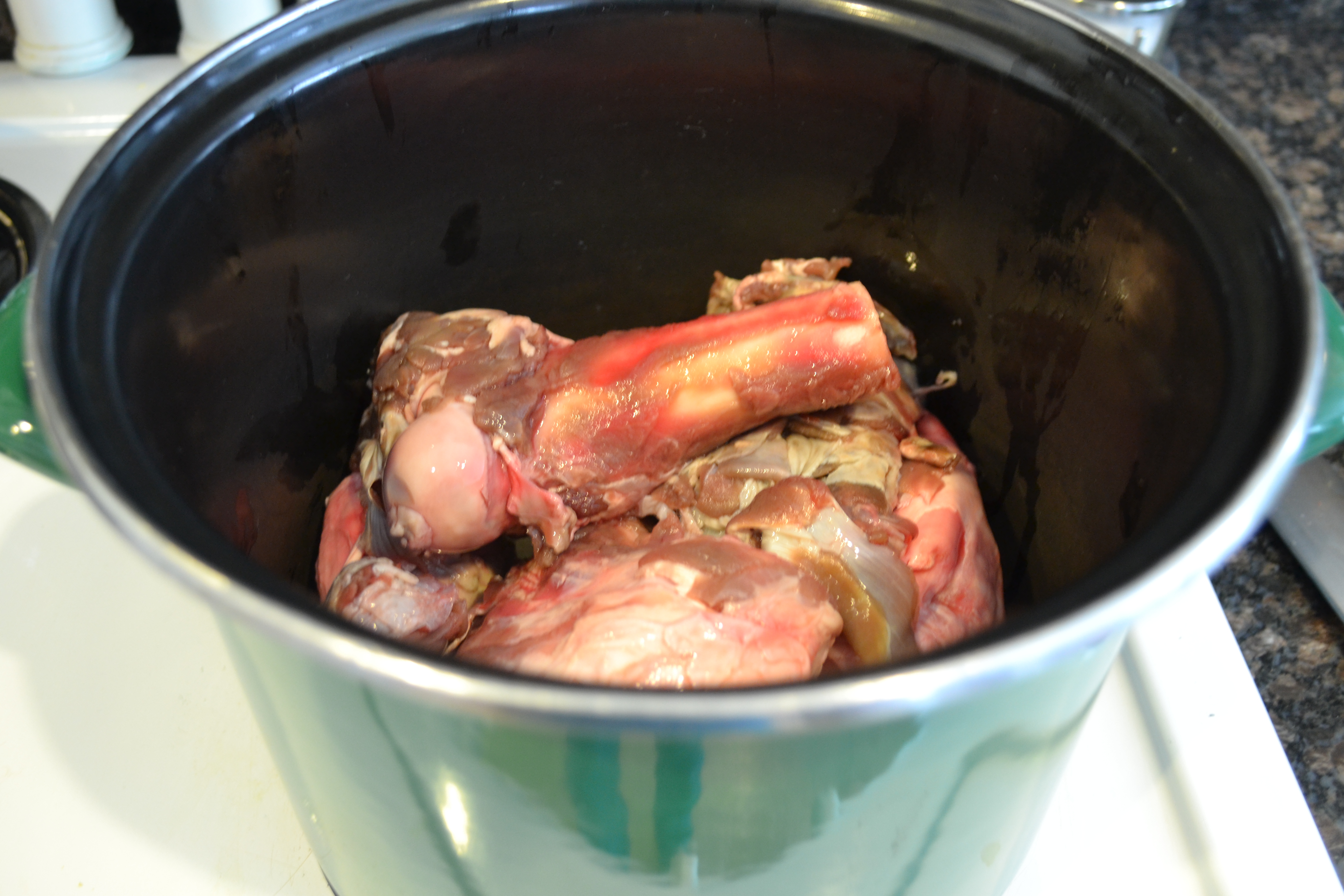 I’m not sure why it took so long for me to start making my own stock. There’s no denying that it enhances the flavor of many dishes and can’t be beat in soups and stews. I’ve made chicken and turkey stock for years but I simply never made the leap of faith to use the meaty bones of venison and nilgai to create my own integral basis for so many recipes. It’s actually right up my alley. No waste! Use all usable parts! Feed my family with the healthiest possible foods! Be cheap! Boxed stocks cost $2 a box or more and I go through quite a bit in my cooking.