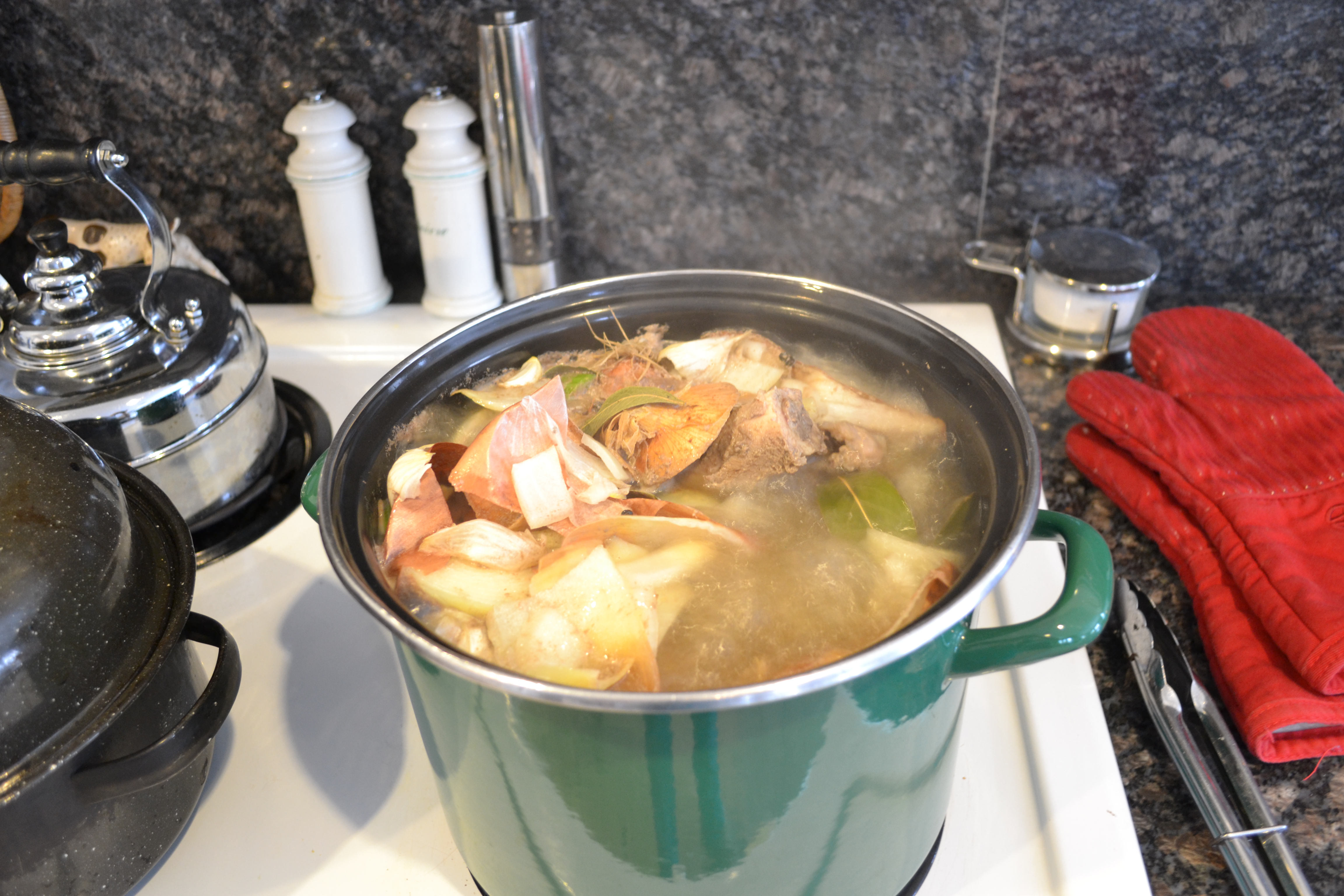 Depending on how clear you want your stock (I’m not a real stickler on this point), it can be strained a couple of times.