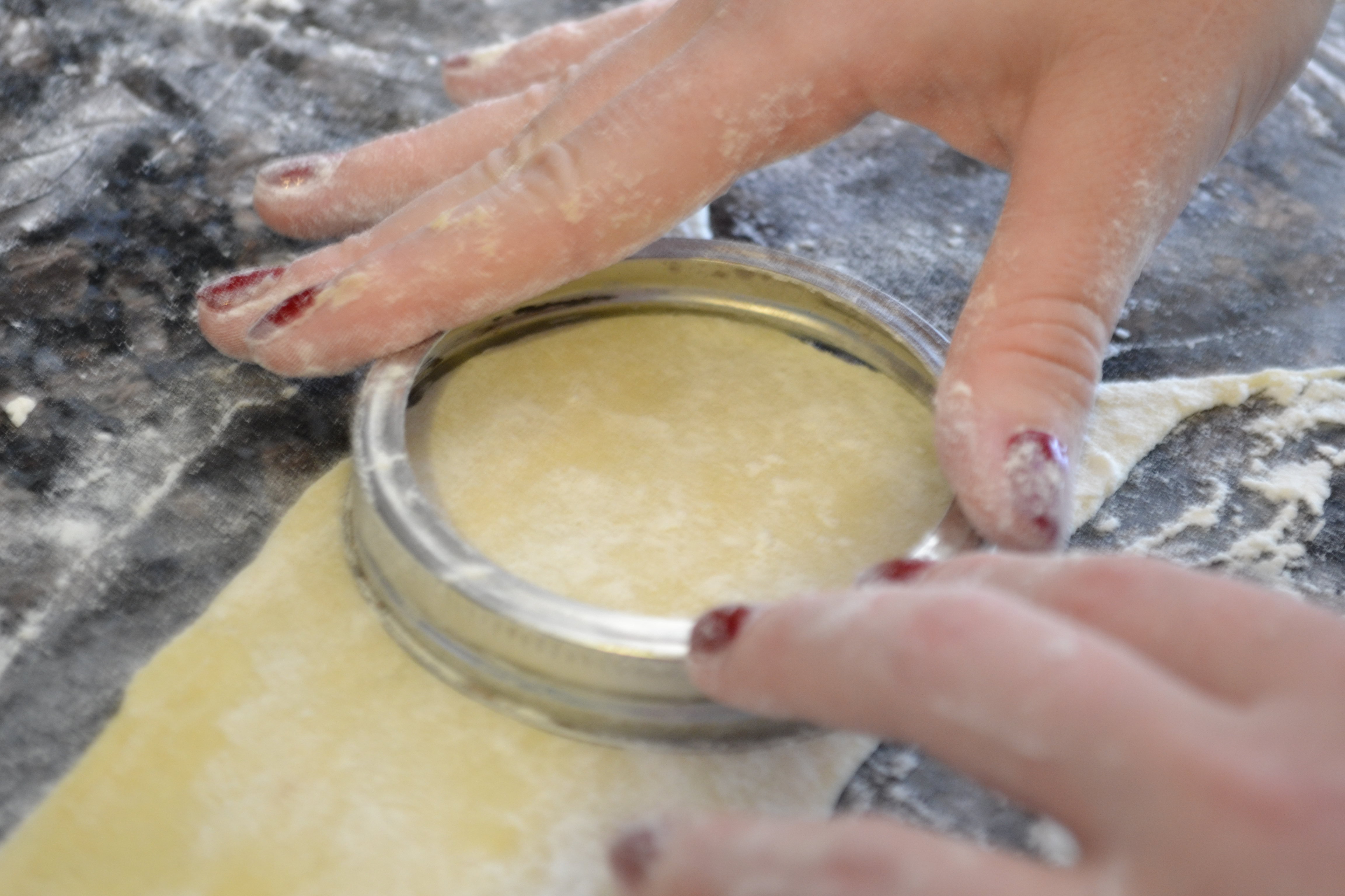 There are lovely, expensive cutters available on the market. This canning lid works really well, though.
