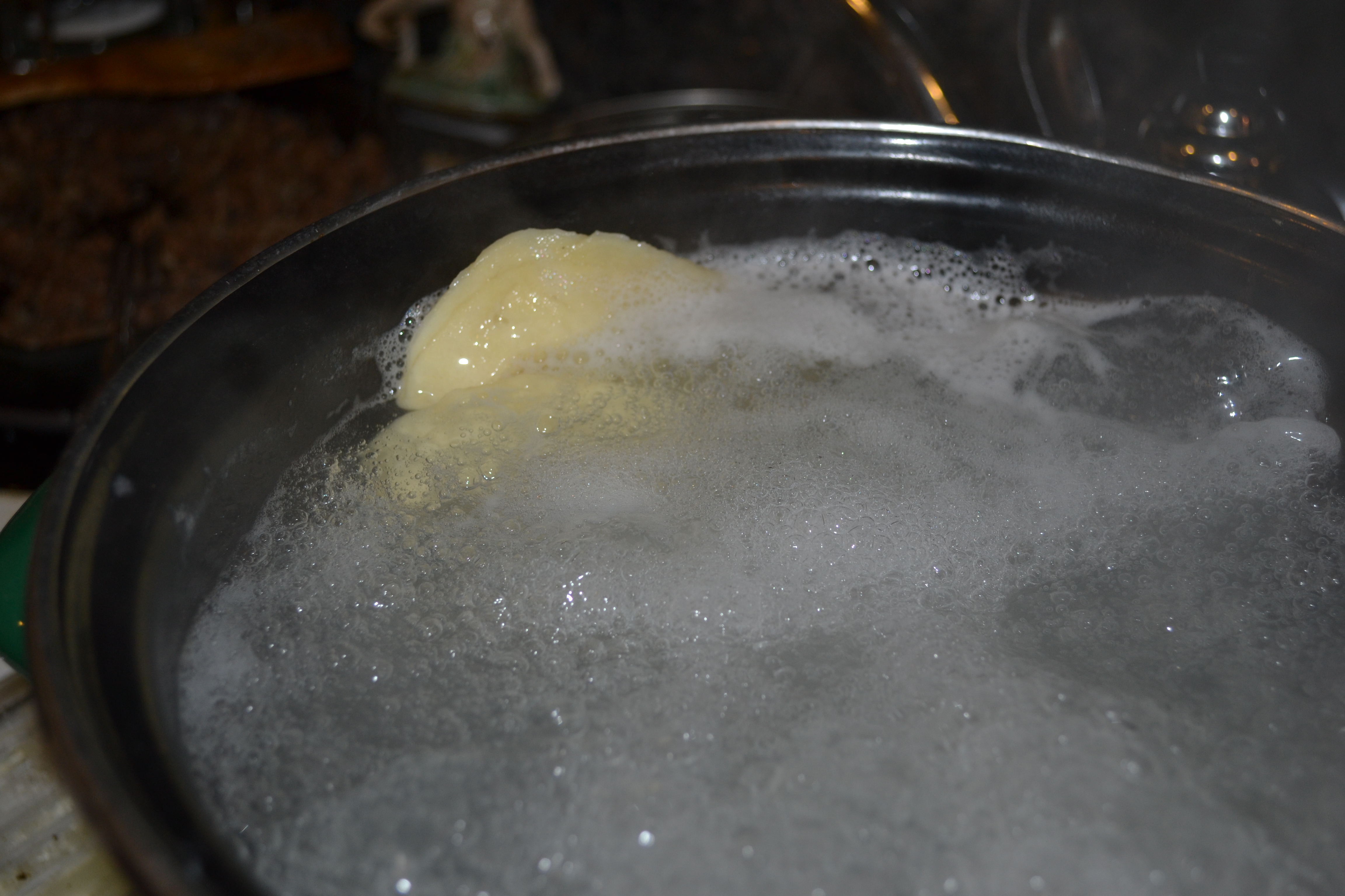 Add pierogi, a few at a time, to the boiling water with a spider or slotted spoon. Once they begin to float for a couple of minutes, they are ready to take out and enjoy.