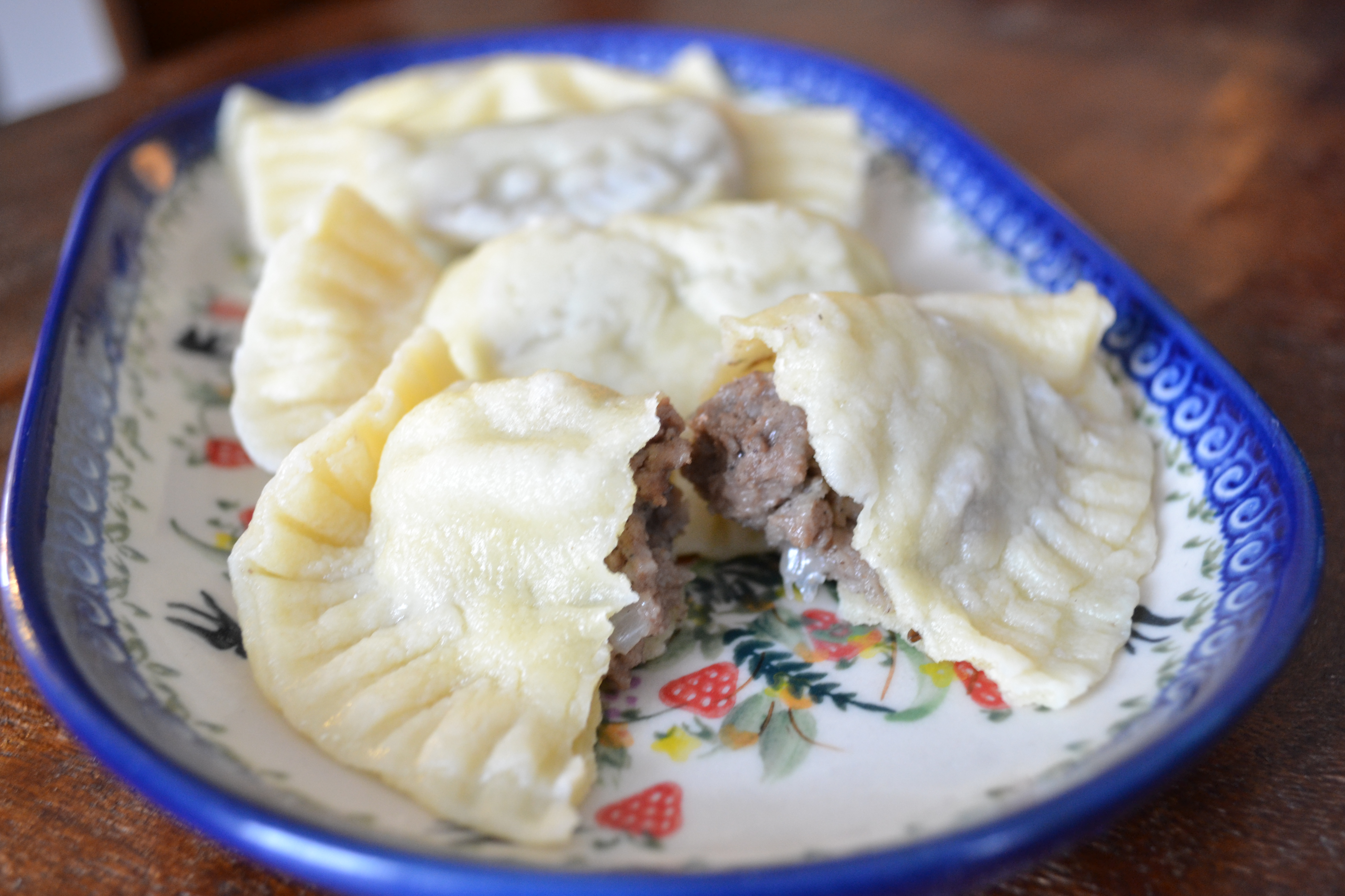 pierogi 034Delicious little pasta pillows filled with spiced meaty goodness.  It’s the best description I can think of for the Polish dish called pierogi.  Little Polish ravioli!  There are several traditional recipes that include fillings like saurkraut or potato/garlic.  Both are out of this world.  However, the magic comes from the pasta that is made perfect with the addition of sour cream, rolled incredibly thin, enveloping a flavorful filling.  For the sake of my readers, I’ve used some traditional Polish spices with some ground venison to create my own version of this traditional favorite.