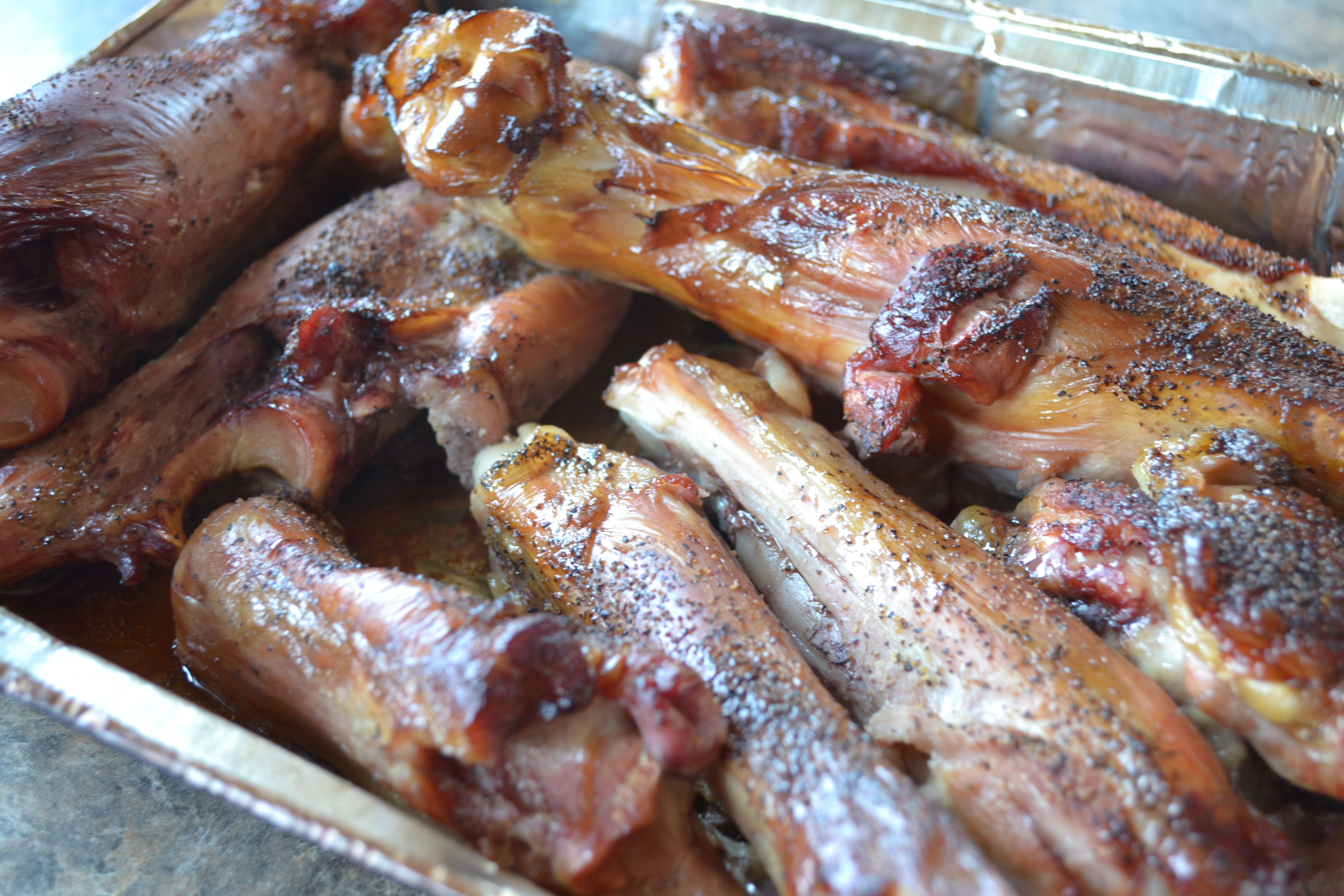 We’re taking a leap this year. We’re giving thanks at the hunting camp. It will be just our immediate family, with all of our favorite dishes, sunrises, sunsets, campfires, and, of course, hunting. I’m preparing everything at our house and transporting it. The turkey, however, is brining at home and will be smoked out at the camp with the help of Patrons of the Pit. Deerslayer and I hated the idea of going to all the trouble of getting that smoke going without taking full advantage of it. Thus, we brought a few wild pork shanks and a couple of wild pork roasts we had in the freezer, which would be fabulous with that wonderful smoky flavor. The smoked shanks can’t be beat for seasoning a steaming pot of beans!