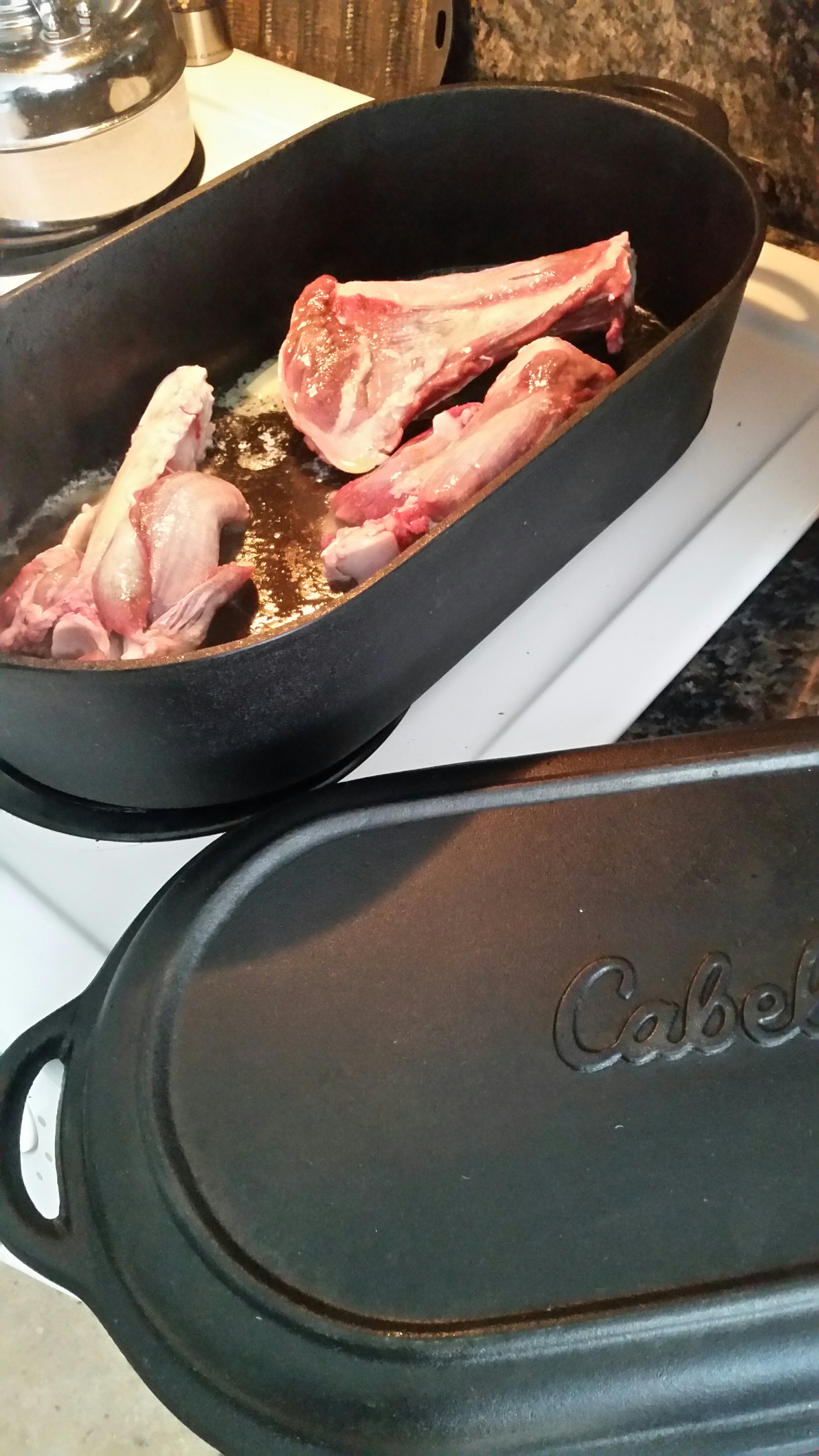 This extra large, oval roaster is exactly what I needed to prepare venison shanks with white wine and garlic.