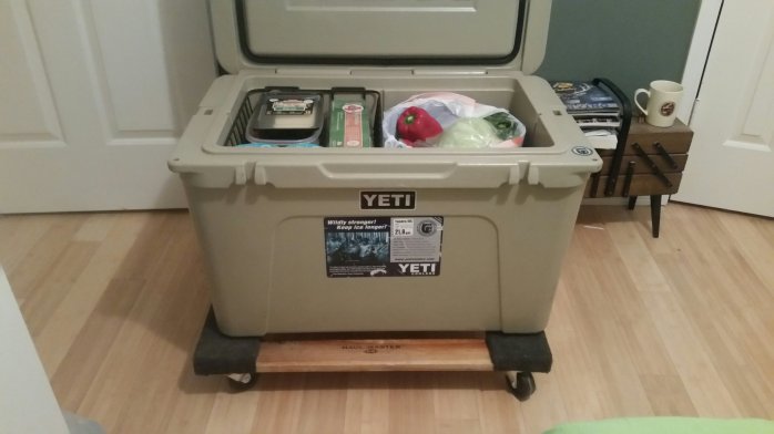 As much as I LOVE our Yeti coolers, one of the only issues that I have with them is that they are HEAVY. Even empty, they weigh quite a bit. A solution that I found for moving them around the house easily for packing is to set them on small moving dollies that we purchased from Harbor Freight. The dollies allow me to roll the coolers freely around the kitchen and out to the truck for loading. I purchased two extra ones to keep in our hunting cabin. I can use the coolers when I need them and push them conveniently out of the way when I don’t.