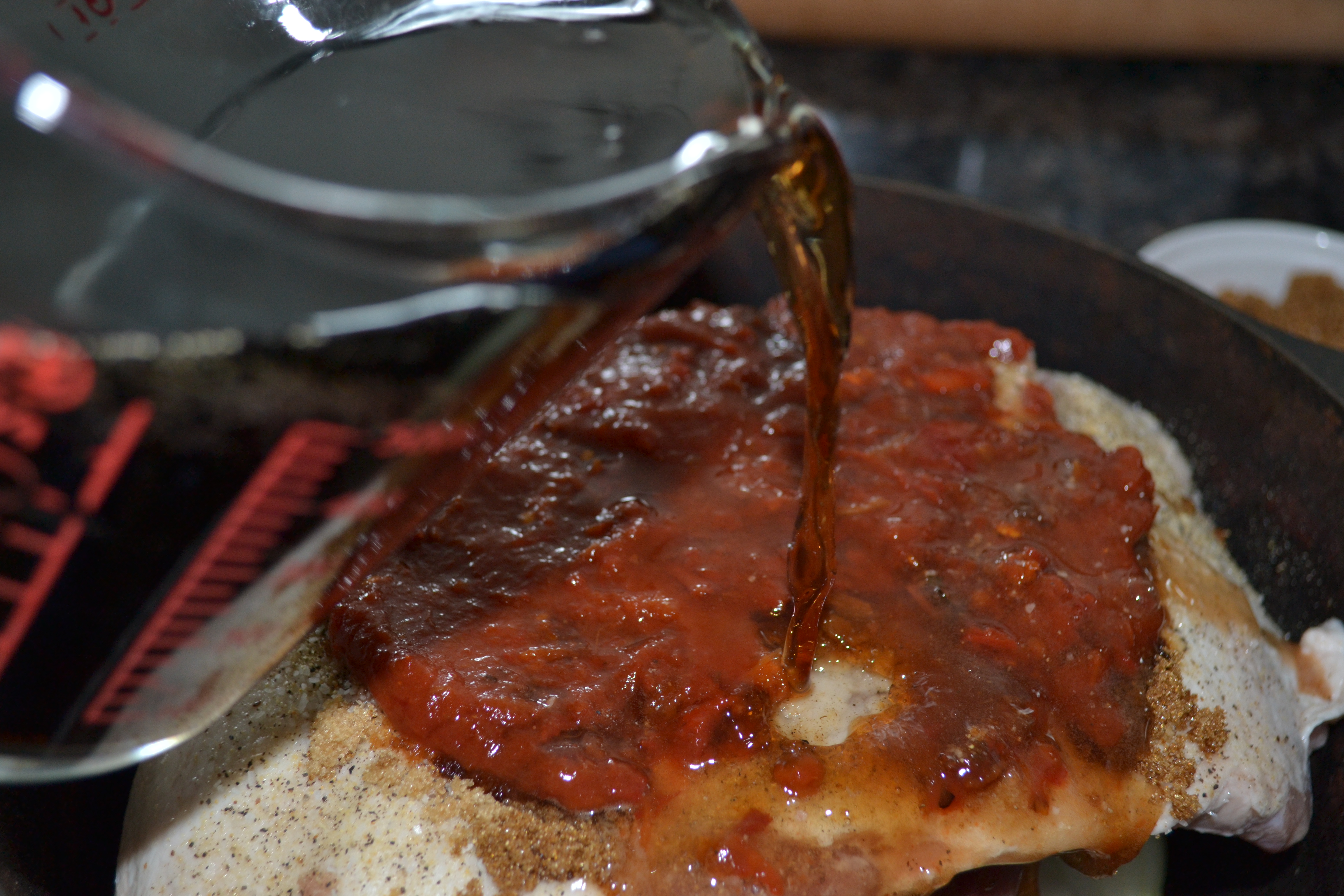 Pour Dr. Pepper around meat.